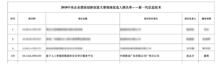 2018中央企业熠星创新创意大赛现场复选活动顺利完成,衡昊数据AiSee可视化开发平台助力广州移动进入复选名单,以下为正式公告内容: